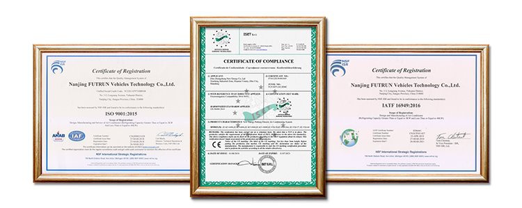 हमने अपने एयर कंडीशनर उत्पादों के आईएसओ 9000, आईएटीएफ 16949 और सीई प्रमाण पत्र पारित किए हैं। हम डिजाइन चरण, उत्पादन चरण, गुणवत्ता निरीक्षण चरण, पैकेज चरण आदि के दौरान 16949 में गुणवत्ता आवश्यकताओं का सख्ती से पालन करते हैं।